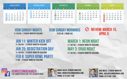 5:00 p.m. - HSM (Student Ministry Building)